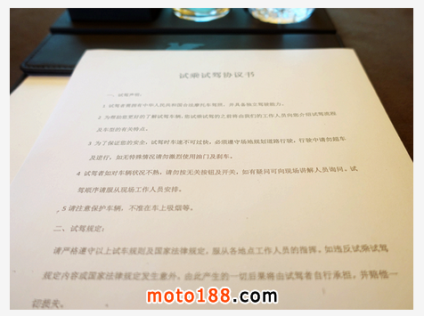 每個試駕媒體都要簽署試乘試駕協(xié)議書,并擁有D級以上的摩托車駕駛執(zhí)照。
