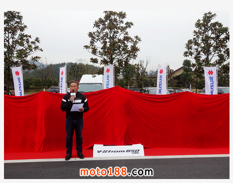 鈴木(中國)投資有限公司副總經(jīng)理下位啟介先生揭開紅蓋頭,SUZUKI V-Strom 650 首次出現(xiàn)在中國媒體面前。