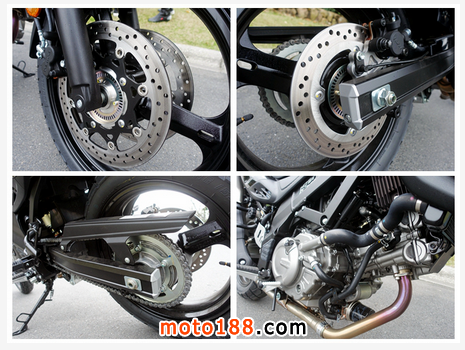 大尺寸的前雙后單碟剎讓 SUZUKI V-Strom 650的安全性能大大提高 ,傳統(tǒng)的鏈條設(shè)計也較為可靠易于維護。