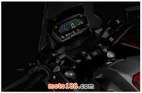●2016 HONDA NC750X新設(shè)計的液晶體儀表,新的Showa前叉頂擁有比上一代精致的設(shè)計,比上一代高70mm風(fēng)鏡相信有更佳擾流效果。