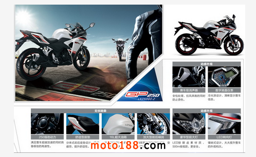 這款2015隆鑫GP升級版LX250GS-2電噴跑車,全車外觀絢麗,并從風阻等相關(guān)因素出發(fā)進行外觀優(yōu)化,使得整車行駛阻力偏小,降低了油耗值和提供整車良好的流線型外觀。整車結(jié)構(gòu)的人體工程學參數(shù)優(yōu)化,讓乘客在騎行過程中有良好的舒適性。車身線條棱角分明、鋒銳流暢,型面干凈利落,桁架式車架,大幅提升整車的強度與剛度,極富時尚動感,硬朗的設計風格在眾多街跑車型中特別顯眼,給人別具一格的感覺。前臉金剛酷感的線條設計,增加了車頭的擴張感,更顯大氣,也使前臉的視覺效果更為驚艷,更富動感活力,給人以年輕的感覺。透鏡式近光燈,使得更好的聚光性能,風格定位一目了然,讓人一見傾心;大容積油箱為用戶遠程騎行提供充足保障。前后真空胎的使用,使得輪胎抗穿刺加強、耐磨性和安全性得到極大提高,別具匠心,用心保護駕駛者,城市街跑全新配備。