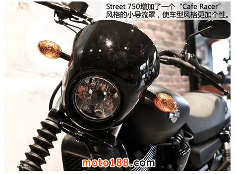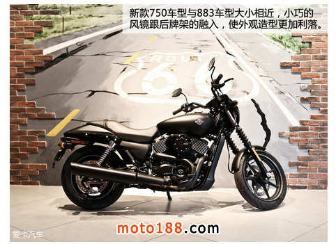 傳統(tǒng)的哈雷摩托車給人們的第一印象是重裝,而哈雷入門車型Street 750卻給人一種相對容易接近和輕松的感覺,它主打街道風格,不歸屬于Sportster、Dyna、Softail、V-Rod、Touring的任何一支。Street 750作為中量級巡航車卻擁有靈巧的操控和相對入門的售價,也深深的吸引了年輕人和女性消費者。