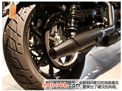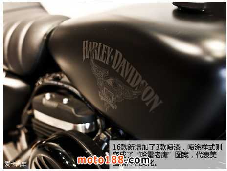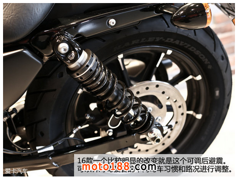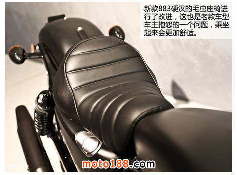 2016年暗黑定制版883硬漢車型真的是在諸多方面進行了改進,給了我們不少的驚喜:可調節(jié)的后減震器、油箱涂裝、Bobber風格、Tuck and Roll舒適座椅、空濾形狀、全新9輻輪圈、純黑色排氣管等等吧,哈雷戴維森這回給大家的感覺確實是在用心提升產品的品質,希望給到喜愛883硬漢的擁簇者一個驚喜。