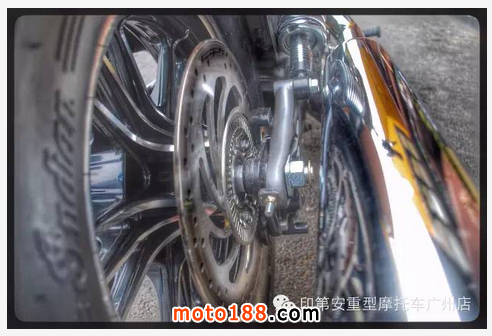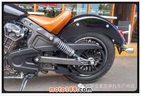 2016款Indian Scout前后輪轂依然使用了復古風格的設計但與15款輪轂對比16款輪轂則采用了電鍍輪轂邊,而前后泥瓦也保持了經典的造型與精髓;座墊與車身融為一體,讓傳統造型與現代工藝結合,三角形主車體構造,16款scout繼續取用韌性更強重量更輕的鋁合金車架,完美演繹了傳統造型與現代新工藝的完美結合。