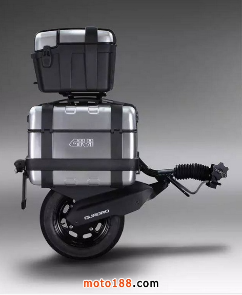 Quadro 4 motion是一部具有創新意義的摩托車,加上專用拖車后便成為一款5個輪子的摩托車。