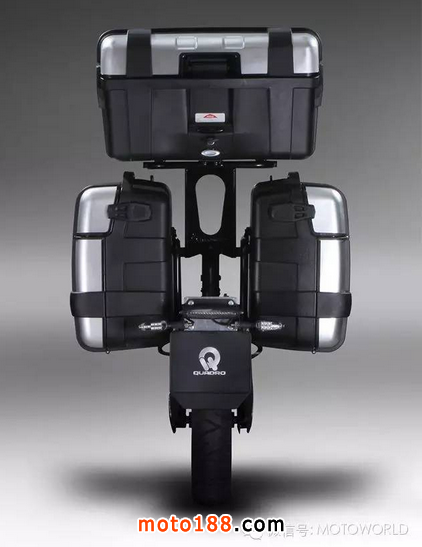從尾部看上去,像是一款特征明顯的旅行探險摩托車,巨大的行李箱可以裝下摩旅所需的所有物品