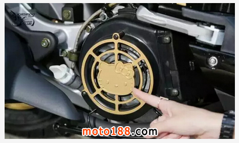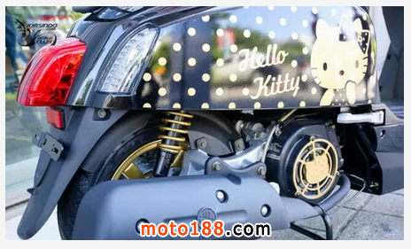 車身側邊以黑底圓點彩繪搭配大面積Kitty圖像,這要是騎在路上眾多妹妹都會多看一眼。