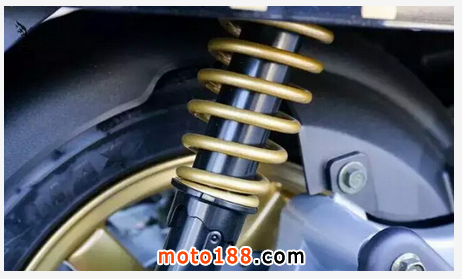 從車後看過來可以發現本次避震彈簧色調改為金色。