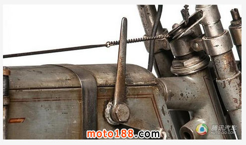 車的油箱上還印著哈雷戴維森的字樣,這款哈雷摩托車是從自行車的基礎上設計改裝而成的,是最早的摩托車原型。