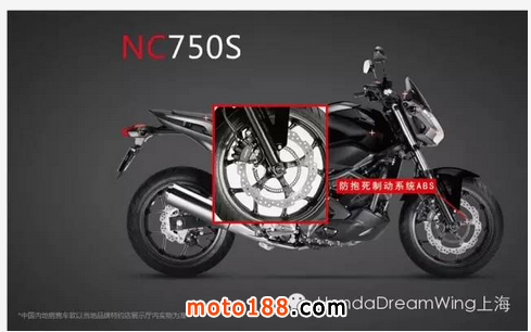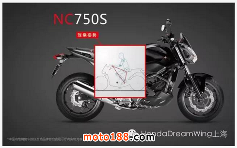 NC750S采用全新鋁合金尾搖臂,重量更輕。車身寬度由760mm增闊至780mm。其余長度、高度和座高都維持不變。車架、避震系統、輪胎都沒有變動,但ABS是標準設備。制動牛角也加上可調距離的功能 。座墊材料也有修改。防盜設備有HISS芯片防盜鑰匙,尾燈是LED規格。