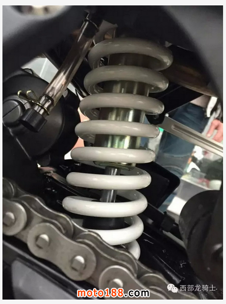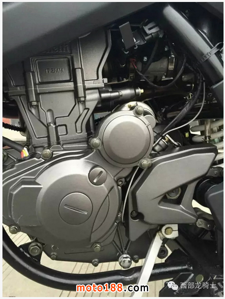 我們來看看其動力心臟,國內唯一雙凸輪軸、四氣門、水冷單缸往復六檔鏈條傳動電噴發動機提供持久卓越的動力,對于140公斤的它來說,可以用動力強勁來形容!