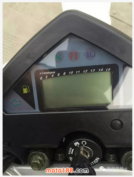 坐上車子,較高的車身,寬泛的駕駛視野,稍一低頭,簡潔,清晰的全液晶儀表,需要說明的是發動機轉速不再是一個指針或數字跳躍,而是創新的橫向排列,由左至右,不得不說在國內多用途摩托車里是一個絕對的創新。鋁合金變徑手把,不僅和坐墊、腳踏形成理想的人車工程學原理,而且具有杠桿原理,轉向準確輕盈,具有很強的操作性!