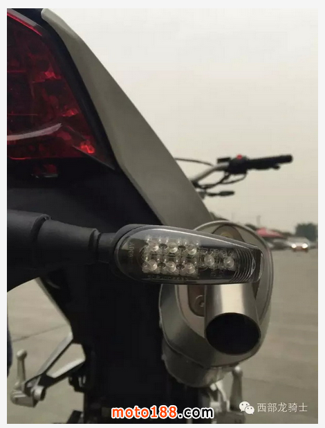 用料十足,質感優秀的不銹鋼排氣,不僅僅是提供了視覺上的美感,性感的單缸脈動聲浪也是動力釋放的第一選擇!