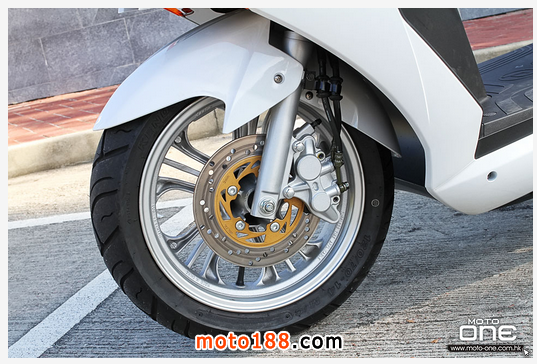 雖然Daelim Steezer的體積較一般125大,但配備前后均是14寸的輪框后,減少了一般125輕飄飄的行駛感,新避震對140磅的編者來說有點硬,而擁有聯動煞車系統的掣動應付Steezer綽綽有餘。