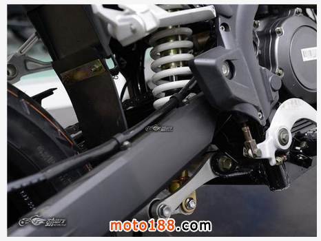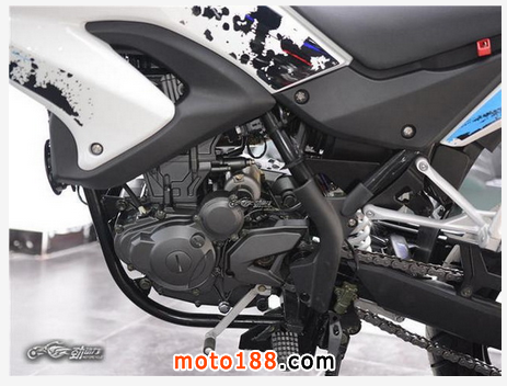 250毫升的排氣量配以國內唯一使用雙凸輪軸、四氣門、水冷單缸往復式6擋鏈條傳動的電噴發動機,對于車重只有140公斤的它來說,動力完全可以滿足大部分的用戶需求。