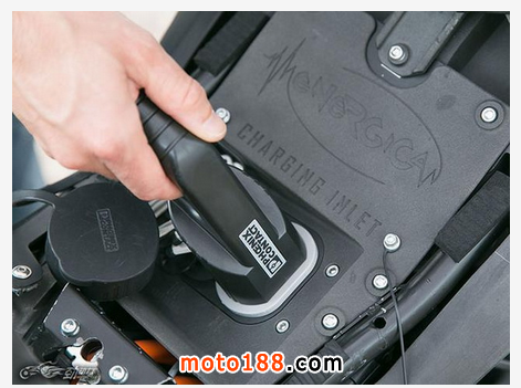 電池組的壽命約為1200次充放電,使用原廠功率為3千瓦的充電器可在3個半小時充滿。另外可選配的快速充電器可把充電時間縮短至半個小時。位于車座下方的充電插頭使用起來很方便。同時,還可通過高、中、低3檔設(shè)置進(jìn)行動能回收,在關(guān)閉“油門”的時候從電機(jī)向電池組充電。動能回收進(jìn)一步延長了續(xù)航里程,但從松開“油門”到真正啟動制動系統(tǒng)的過程中,這種能量回收的方式可能會讓人們不適應(yīng)。對于環(huán)保的另一個貢獻(xiàn)是,當(dāng)電池組快要“壽終正寢”時,Energica公司還可提供原廠的電池置換服務(wù)。