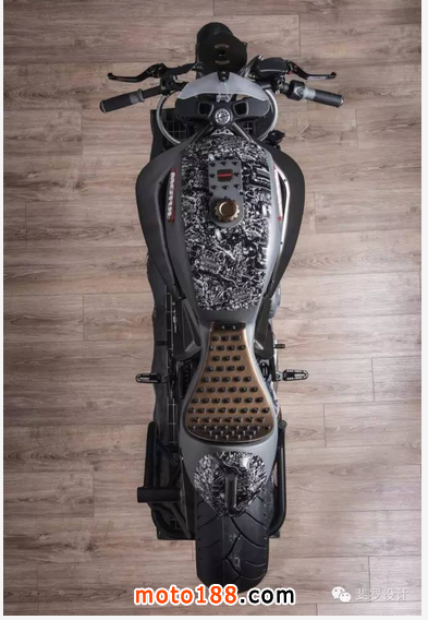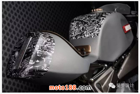 整個車輛以過往的工業時代的特征來敘述著企業的發展歷程,粗大的前制動軟管令人回憶起高壓蒸汽管;工業時代礦燈風格的大燈,鐵軌風格的坐墊,以及齒輪風格的貼花。