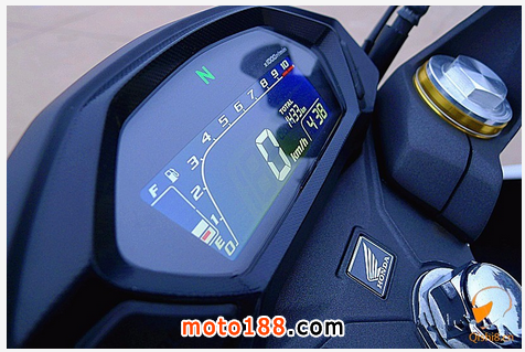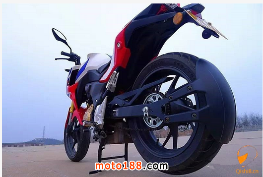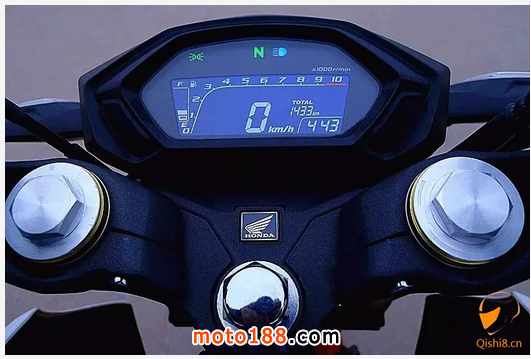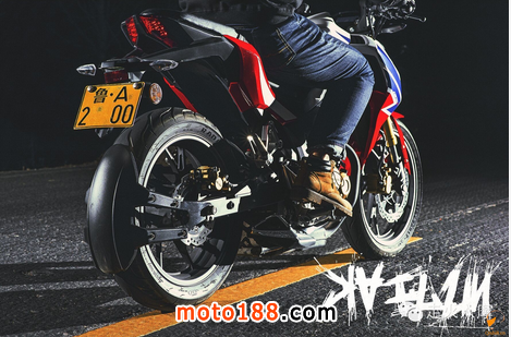 全數字顯示的集成儀表也是此車的一大亮點是從CB500F上直接“移植”過來的,這等頗高的配置甚至在進口大貿的CB300F上都沒有配置(可想本田已經在看重國內市場)顯示醒目、直觀、沒有多余的顯示,唯一遺憾的就是沒有配備檔位顯示,這可能對新手來說上手稍微有些吃力了。 細節部分,在儀表的兩側本田也很細心的采用了仿碳纖維材質的外殼,細節上很讓人滿意! 采用分離式車把的街車著實不多而CBF190R算一個,騎士可以通過調節車把兩端的螺栓來調節適合自己的車把高度和方向。正中心的Honda的logo恰到好處的點綴,配合車把比較細膩的做工,給騎乘者們帶來非常不錯的視覺感官體驗。 全LED的概念在190上得到了很好的體現就連車把的按鈕指示燈也不例外,它也是現目前唯一的國產車上配備此功能的車型。尤其是在夜晚騎行時儀表盤的背景燈和車把背景燈相呼應,整車逼格提升N個檔次。各功能的大按鍵讓你使用起來也得心應手,分布合理! 油箱造型絕對算得上驚艷,棱角分明的油箱向下延伸直接和前翼板融為一體后現代感十足!同樣也得騎士充分的腿部空間。為了美觀Honda的那位美女設計師還為它在油箱兩邊設計了假通風口,至少在美觀的角度上來說這沒錯,您說沒錯吧?個人感覺唯一的缺點就是當你真的跨上這臺車時,你總會覺著油箱整體著實小了一號,不過這會體現出他的另一面——靈活 一體式的車座采用紅色的縫線鏈接,運功感十足!主駕駛座和副座較高的落差似的這臺車的“屁股”能夠高高翹起顯得整車非常的戰斗。車座的乘坐舒適度適中,并沒有像藍寶龍300那種坐下去就陷下去的感覺,但是也沒有那種像防賽那樣硬邦邦的感覺,更夠很好的襯托我想這就是最符合街車定義的吧 最后來到車尾燈這,我們看到的依然是各種的LED,不過這塊尾燈上的塑料外殼確實不夠顯檔次,和整車的珍珠漆面外殼很是不搭,在下方設有隱藏式的把手,方便一旦發生意外倒車扶車使用。