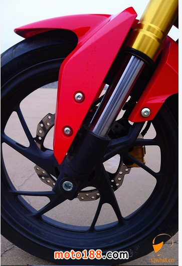 黃金色的倒置前叉加上單盤雙活塞的剎車卡鉗配置絕對厚道,調教一流的前懸掛配備110/70-17的前輪。本田對它的調教能給你提供較強操控力能力的同時,剎車能力也是同級別里數一數二。