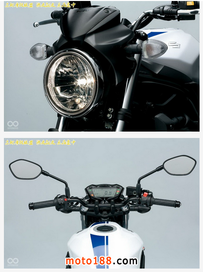 收窄的車身下是經典的鋼管編織車架,搭配大圓燈,帶有DUCATI MONSTER的風味。除了ABS系統外,SV650配有全新的全液晶儀表,SUZUKI輕松啟動系統( Easy Start輕按一下即可立即啟動車輛),較低的座高設定,讓身形嬌小的騎士也可輕松駕馭。