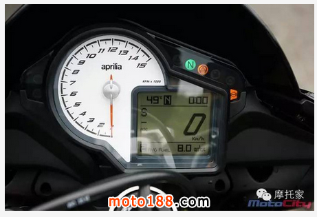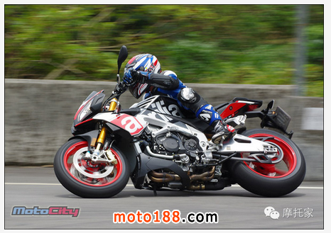 而跨上這部漂亮的Tuono V4 1100時無論是坐墊的柔軟寬敞度.與手把的高角度配置.還有人與車的三角定位 完全就是街車的輕鬆騎姿.接下來發動引擎.開始進入試乘。