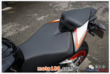 在坐墊方面.RR版採用一體式雙座墊,而Factory版則比照RSV4採用跑車式的高低坐墊設計(可換裝單座蓋) 。