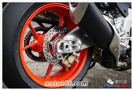 后剎車為220mm單碟配Brembo雙活塞卡鉗 ,后輪規格為190/55 ZR17 。