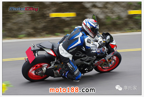 但是起步的出力表現Tuono V4 1100絕對是大勝.緊接著在直線道路中筆者用極慢的速度轉入較大幅度的油門.想感受一下低速扭力的表現.但瞬間筆者就后悔了。