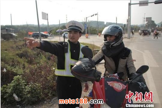 核心提示: 藤縣交警為摩托車手指路。 2月13日是大年初六,廣西的摩托大軍也陸續開啟了返回廣東各地打工的行程。廣西梧州藤縣位于兩廣
