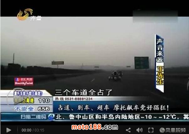 “基本上三個車道都占了,別了我好幾下,并排著走不讓我們超車,相當危險。”王先生說,除了占道、別車,飆到興起,這些摩托車還超起了四輪車,旁邊的車輛見狀只好減速避讓。