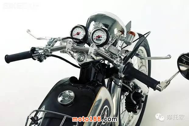 值得一提的是,和很多日系的改裝廠牌一樣,Motor Rock也喜歡Avons家的復古輪胎(例如該車裝配了前Speedmaster Mark II,后Safety Mileage Mark II兩條Avons輪胎),而不是像歐美廠牌那樣對Firestone Deluxes 情有獨鐘。
