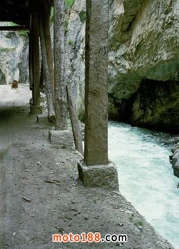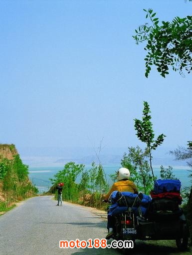 路上經(jīng)過了很多高山,有些照片我掃描后補上,路上還遇到很多被沖壞的路,摩托車的通過性還是差,這樣的路它走起來很費力。