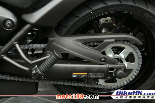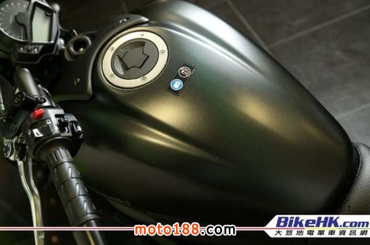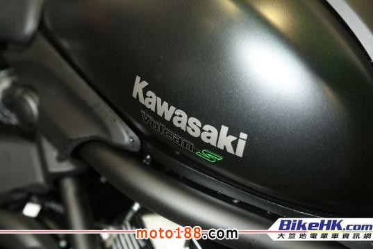 Kawasaki Vulcan S這臺直二美巡深得一班年輕用家歡迎。喜愛它的輕巧、易操控,但同時亦有美巡的舒適以及配合的扭力。2016年新色的Vulcan S變得更為深沉,去年即使以黑色為主,但仍配上一點灰色點綴。今年的新色將黑色發(fā)揮至極,車輪沒有綠色輪圈貼,頭燈罩上的灰色部份也改用上光面黑色。(頭燈上的光面黑是不帶綠色線的,那只是室內(nèi)燈光的倒影而已。)水箱側(cè)跟避震下的位置也變?yōu)楣饷婧凇H囄ㄒ坏纳示椭挥蠽ulcan S中的綠色「S」。