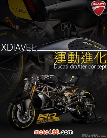 Ducati于一月份舉行的Motor Bike Expo of Verona中展示了一臺全新的概念車,取名「draXter」。當中的X,其實就是源自XDiavel。概念車由Ducati Style Center的高級設計部門負責,該部門專為Ducati開發未來的款式及概念設計。