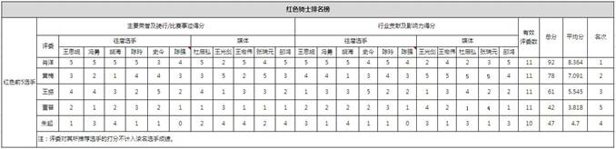 紅色騎士評審團打分排名