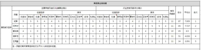 黃色騎士評審團打分排名
