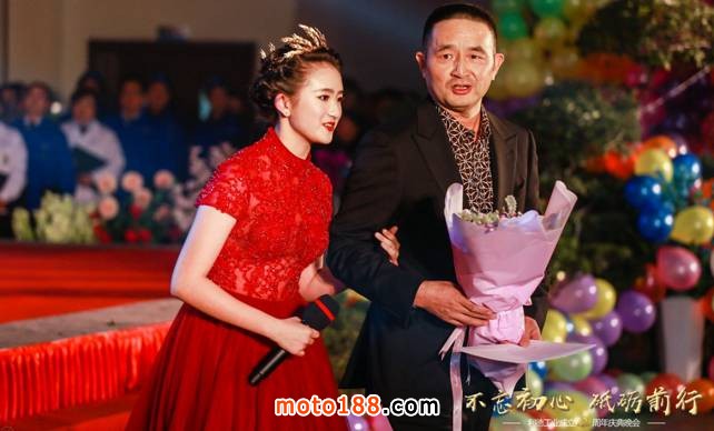 利德工業(yè)董事長陳培新先生在慶典晚會上發(fā)表了講話,并鄭重向利德前任董事長付元才先生及利德創(chuàng)業(yè)初期的前輩們表示衷心的感謝和祝福。董事長在講話中提到“人,在一起叫聚會;心,在一起叫團隊”。發(fā)言完畢,由20周慶典晚會的現(xiàn)場主持人董事長愛女陳思佳獻(xiàn)上鮮花和擁抱,在現(xiàn)場熱情洋溢的掌聲中下臺。