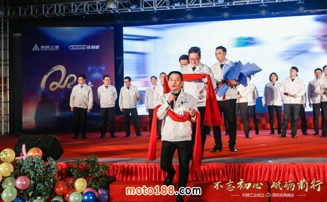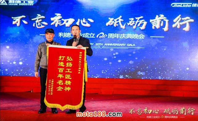 作為本次慶典唯一受邀的業(yè)內(nèi)知名媒體《摩托車與配件》王建總經(jīng)理不遠(yuǎn)千里,遠(yuǎn)道而來,慶賀利德工業(yè)成立20周年,向利德工業(yè)董事長贈送錦旗并發(fā)表賀詞。
