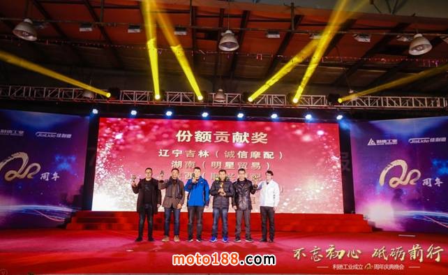 晚會現(xiàn)場利德工業(yè)為維修市場經(jīng)銷商分別頒發(fā)了《份額貢獻(xiàn)獎》、《優(yōu)秀外貿(mào)合作商》、《銷售金獎》、《銷售進(jìn)步獎》和《最佳合作獎》。