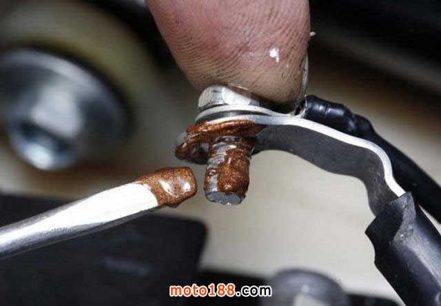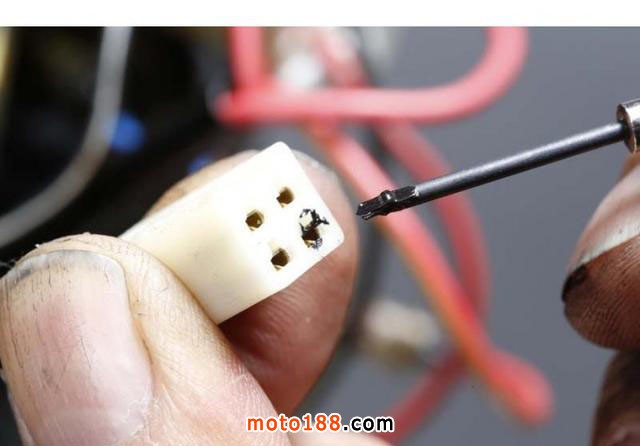 ▲這是用于電線的連接端子,在老舊的摩托車中很常見,接線狀態(tài)會根據(jù)摩托車的存放條件而逐漸劣化。