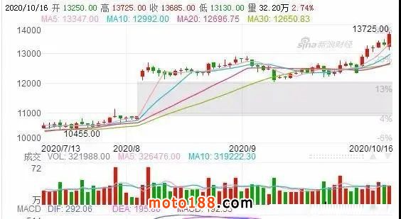 天然橡膠價格從4月的9564元/噸漲到10月的13298元/噸,漲幅高達3734元/噸,漲幅已經超過28%。10月16日開盤價13250元/噸,收盤價13685元/噸,天然橡膠價格持續走高。