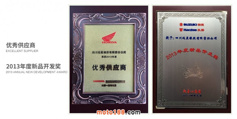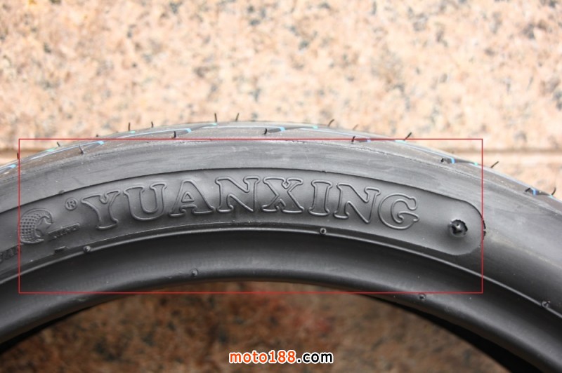 每個品牌都會在輪胎側面用LOGO的方式體現,如下圖這個顯示的LOGO就是遠星的品牌標識,遠星也是國內主流的品牌,和貝納利,錢江,宗申,隆鑫等都有多年的配套合作。