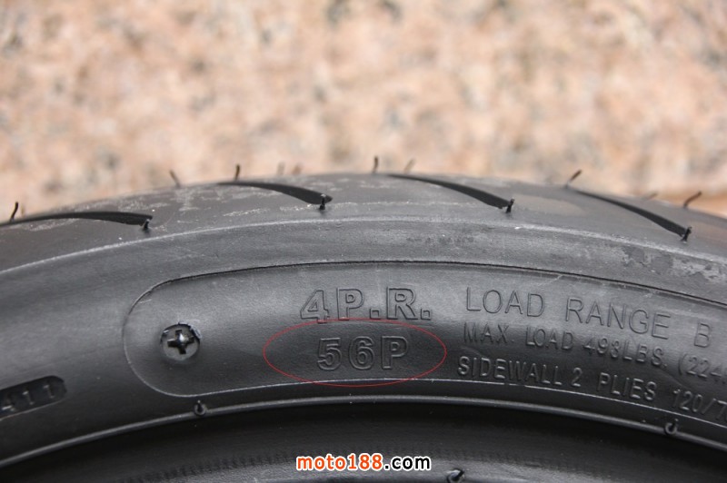 旁邊的一些參數也一起講一下,4P.R.表示輪胎體采用4層結構,層數越多、載重能力越強。MAX.LOAD 493LBS.(224kg)表示最大負載為224kg、 也可以理解為、承載重量為224kg。LOAD RANGE B,負荷等級為B級(和4P.R,4層結構是一個意思)