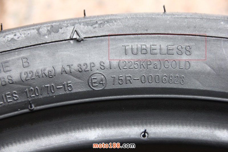 TUBELESS;表示這款輪胎沒有內胎,俗稱真空胎。