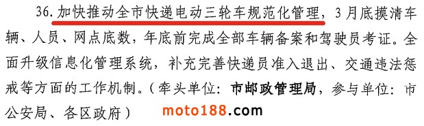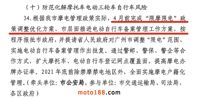 4月前完成“限摩限電”政策調(diào)整優(yōu)化方案,推進電動自行車備案管理工作方案。