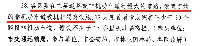 在主要道路或非機動車通行亮大的道路,設置連續(xù)的非機動車道或機非隔離設施。