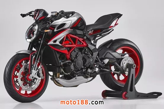 作為MV奧古斯塔Dragster系列設(shè)計(jì)最為極端的車型,DragsterRR SCS RC的設(shè)計(jì)顯然更偏向于競(jìng)速運(yùn)動(dòng)。其設(shè)計(jì)復(fù)雜的側(cè)身曲線、鮮明的雙RR圖案、紅黑撞色的鋁制車輪讓整車充滿了肌肉感,即使是放在托架上似乎也完全阻擋不了其要沖出重圍的凜冽氣勢(shì)。 新版本Dragster RRSCS RC的798CC內(nèi)聯(lián)三缸發(fā)動(dòng)機(jī)滿足了歐五標(biāo)準(zhǔn),改進(jìn)了座椅材質(zhì)和電子齒輪傳感器裝置,使得騎手駕駛更加舒適和方便。