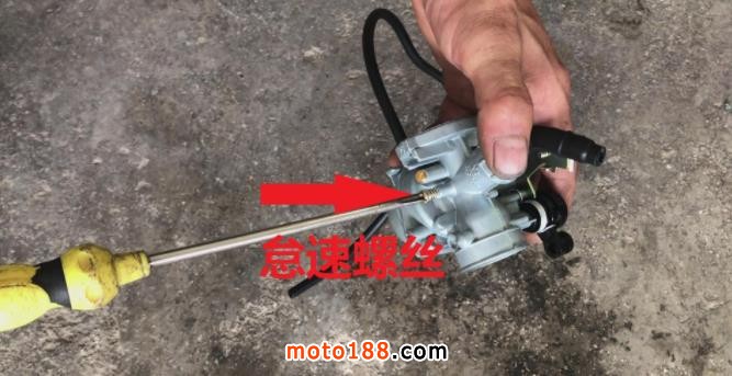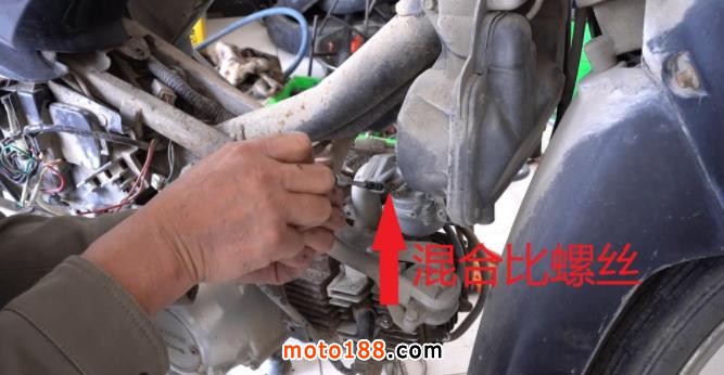 啟動開后如果摩托車怠速不穩,這樣我們就需要調整混合比。調整混合比之前首先把怠速調高一點,啟動開后等摩托車發動機完全熱后再調整。然后找到化油器上的混合比螺絲,不管是順時針還是逆時針,調到摩托車發動機轉速最高停下來,這樣混合比狀態也是最好的,也是最省油燃燒也最充分,發動機動力當然也是最佳狀態。