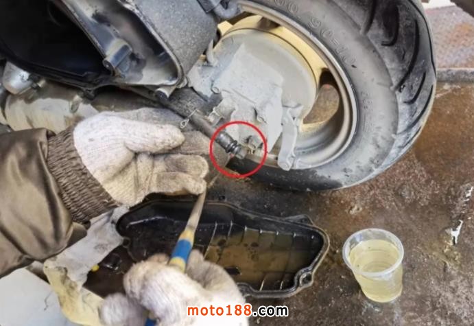 幸好排污孔也因機油氣體乳化把排污孔也堵塞的差不多了,才讓這臺踏板摩托車的發動機逃過一劫。