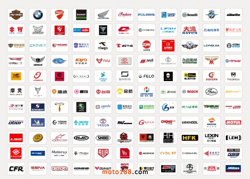 ?燃油摩托車:哈雷、寶馬、川崎、杜卡迪、比亞喬、本田、北極星、印第安、MV、Benelli等國際進口品牌;賽科龍、無極、QJMOTOR、春風、力帆、凱越、奔達、高金、豪進、大運、杰迪、三陽、臺榮、莫里尼、力刻、龍嘉、香帥、漢威、華洋、長江、柴特、嘉陵、摩疆、布雷斯通等中國摩托車領軍品牌